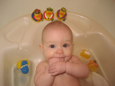 Madeline is now 20 weeks old! She laughs and smiles and today when she sneezed, we said, "God bless you!" and I could swear she said "Thank you!" afterwords. Naturally, she is very well mannered!